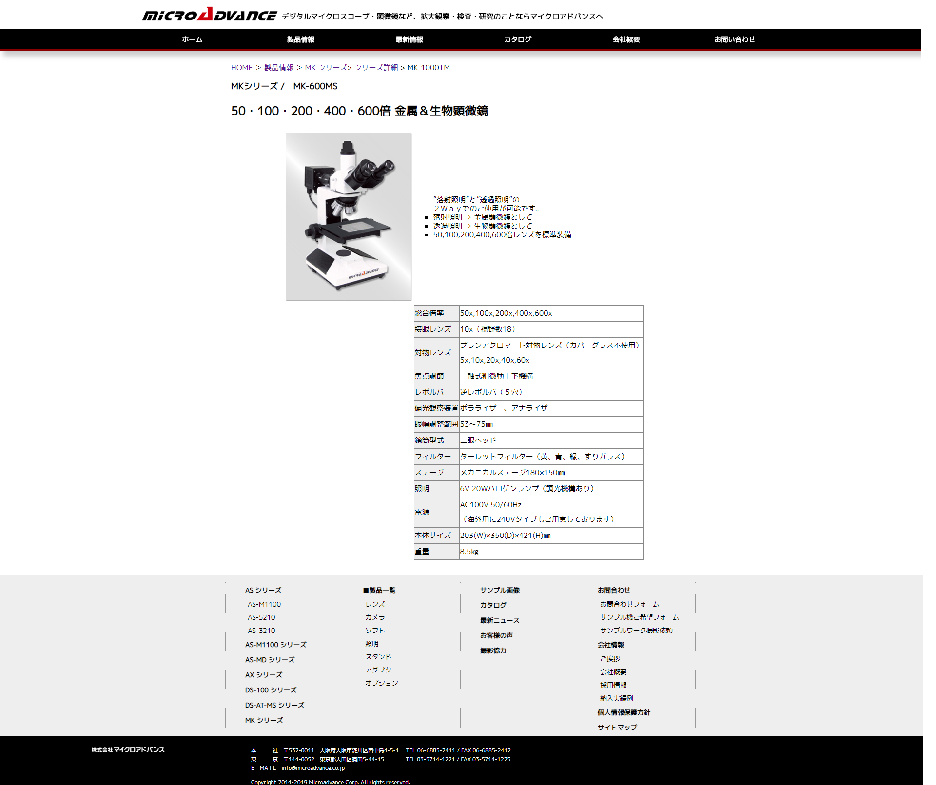 プランアクロマート対物レンズ(カバーグラス不使用)